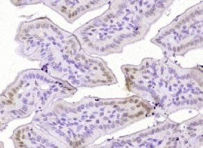 多聚甲醛固定,石蜡包埋(小鼠肠组织);用柠檬酸钠缓冲液(pH6.0)煮沸15min后获得抗原;用3%过氧化氢阻断内源过氧化物酶20分钟;阻断缓冲液(正常山羊血清)37℃30min;用(Bcl xL)抗体孵育THR115))多克隆抗体,未结合,1:400,4°C下过夜,然后根据SP试剂盒(兔子)说明和DAB染色进行操作。