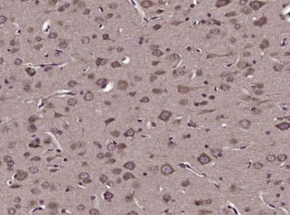 多聚甲醛固定,石蜡包埋(大鼠脑);经柠檬酸钠缓冲液(pH6.0)煮沸15min后获得抗原;用3%过氧化氢阻断内源过氧化物酶20分钟;阻断缓冲液(正常山羊血清)37℃30min;用(Angiotensin II型1A受体)多克隆抗体(未结合)进行抗体孵育。)在1:400在4°C下过夜,然后根据SP试剂盒(兔子)说明和DAB染色进行操作。